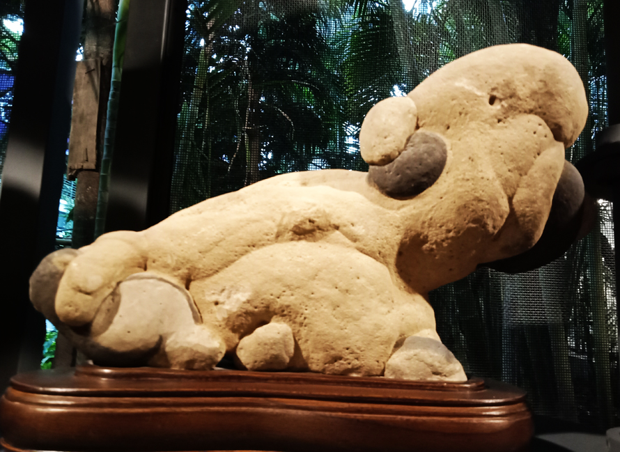 最奇怪的造型莫过于一种卡通石头,有资料表明,这种石头最早发现于青海穆盖滩沙山,这种石头造型虽然奇特,但石头表面不光滑,石质也比较软,摔在地上容易碎裂,因此并没有引起重视。那时,当地人把它称作沙疙瘩石,或者泥浆石,就是因为它仿佛是沙子凝结堆积起来的,因此那时一块石头的价格也就是十几、几十元钱。有经营石的人带到柳州后引起关注,专家鉴定后认为是古陶石,主体颜色就是类似陶土的黄色、黄白色、褐色,还间杂着起到给造型画龙点睛的黑色。是由沙质岩浆凝结而成的,因此一块未经打磨处理的卡通石的表面,一眼看去就是细粒沙黏结而成。