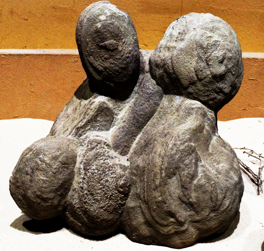 还有黑色的恐龙蛋被土褐色的圆形巢穴包裹着即将破壳而出的造型,纯黑和包裹体(母体)互成套色,因此这种石头,被藏石家称为石蛋。还有母子相互依偎的造型。还有头戴黑色纶巾的两名古代文士,邂逅在赶考的路上,两人相互拱手揖让……大自然的鬼斧神工令人惊叹。卡通石不以质地取胜,而以造型取胜,它的成型率据说有40%,但是造型精品率跟所有的藏品一样很低,因此卡通石精品的价格涨幅达几百倍。