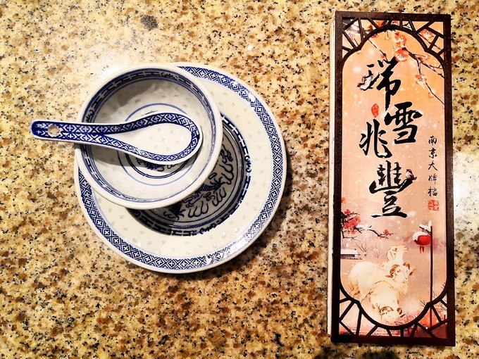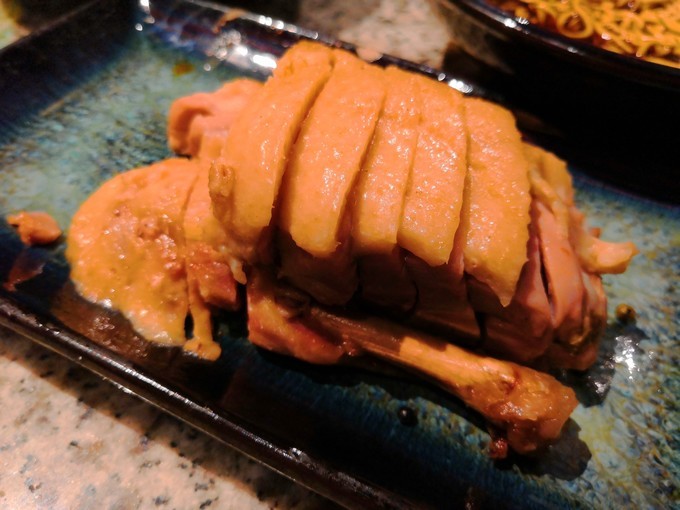 如果选一处汇聚最多金陵小吃的地方,那就是这儿了吧,走进大牌挡,随处可见的楹联灯幌,一套陶瓷的茶壶和杯子,青色古香碗碟,身着古装堂倌穿梭于桌台之间,店家那独特的吆喝声,置身这其中,仿佛回到了清末民初茶楼酒肆里。帮朋友点了几道最具代表,两个人也正好够吃的菜,朋友连连称赞到都是最想吃,最好吃的:香甜糯滑清香四溢的桂花拉糕,鲜美鸭汤和粉丝融合的鸭血粉丝煲,入口即化肥而不腻的清炖狮子头,鲜嫩多汁的古法甜芋苗,以及金陵八绝中经过改良的的麻辣干丝,当然,南京人爱吃鸭,烤鸭盐水各来一份,原汁原味,跟盆友介绍南京人的烤鸭精华在于卤子!就这样享受着美食,分享着各自的旅行故事!