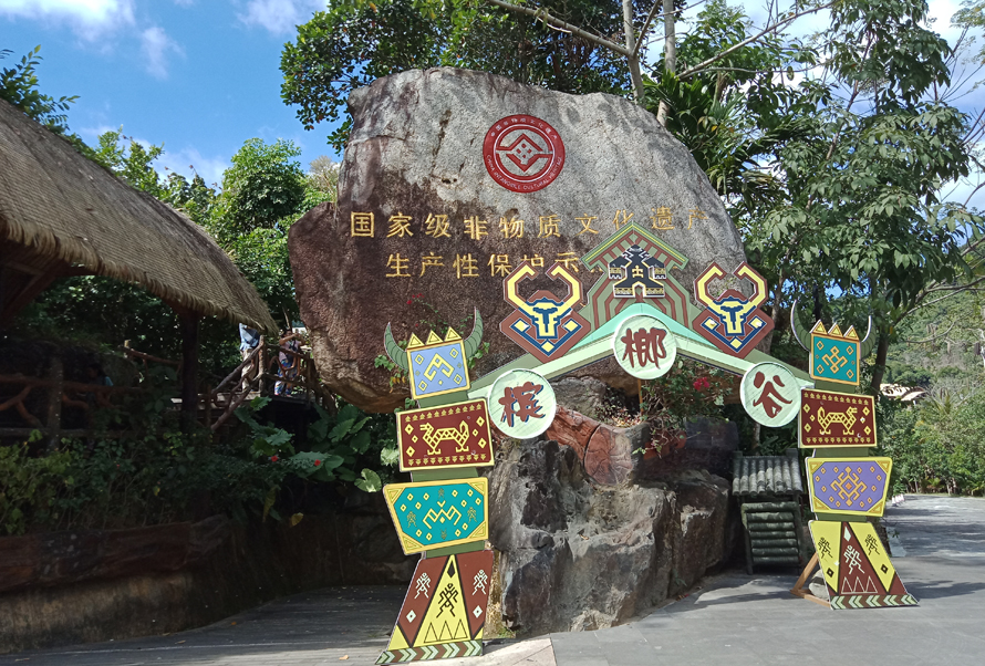 黎族传统纺染织绣技艺存续了3000年,堪称纺织史上的“活化石”。黎族织锦主要包括纺、染、织、绣四大工艺。导游介绍,黎族传统纺染织绣技艺由黎族棉纺织工艺、麻纺织工艺及熏染工艺合并而成,黎锦是纺染织绣技艺的典型代表。