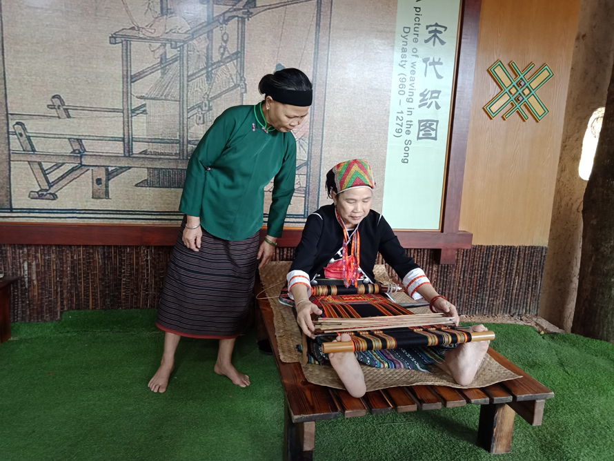 织锦技艺也是这里的一绝,如今由于传承问题面临断代的风险,我抵达这里的时候,有一些阿婆在这里表演织锦,她们身着本民族服装,操作这古老的织车,微笑着与来客合影,她们的黎族语言艰涩难懂。