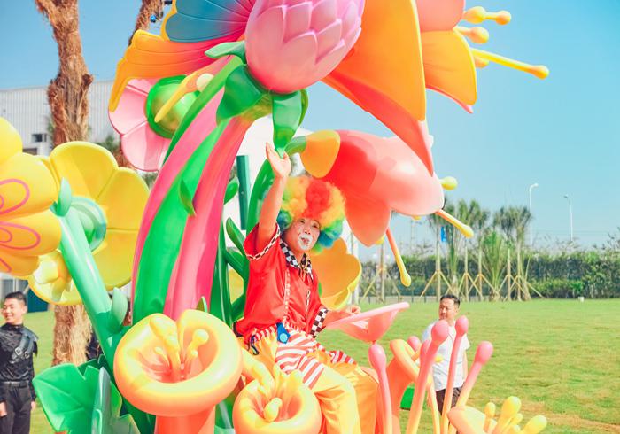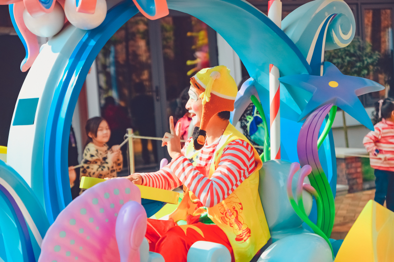 可爱的小丑们也坐着同样可爱的五彩花车,露出最灿烂的笑容。