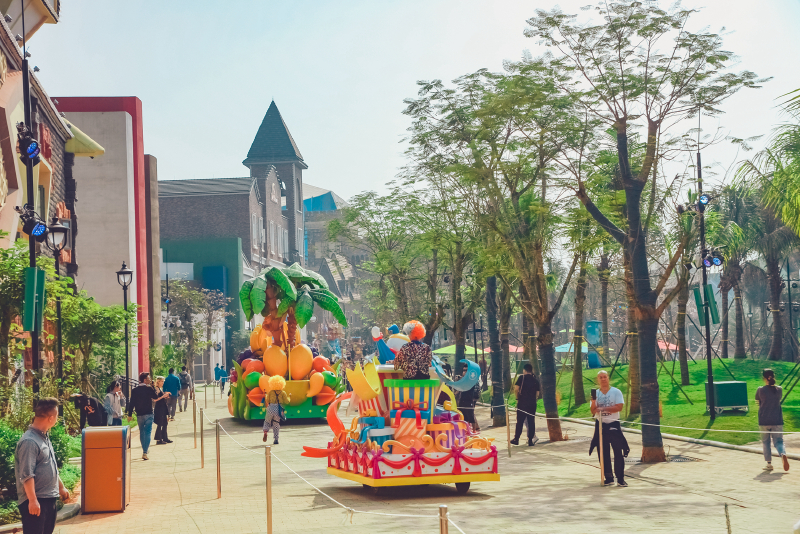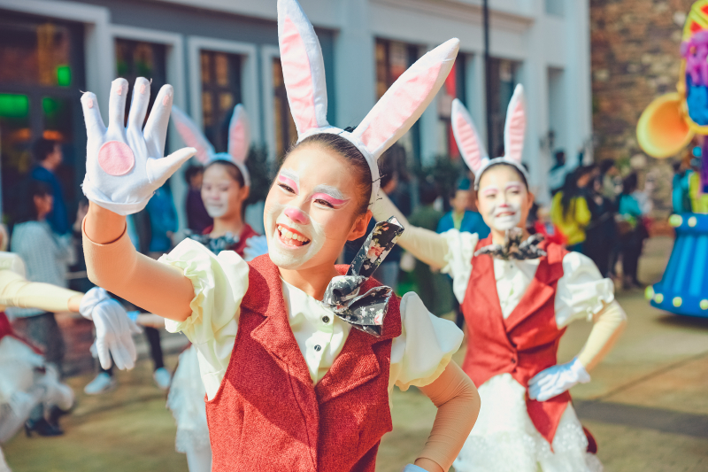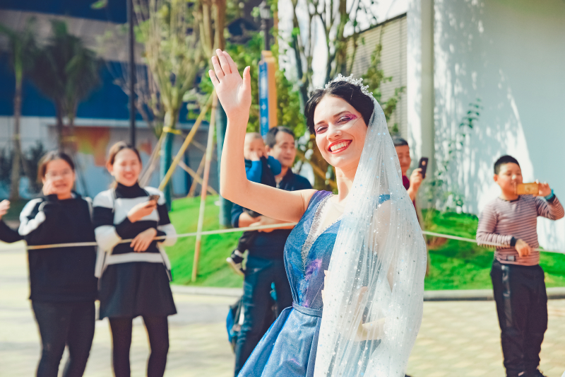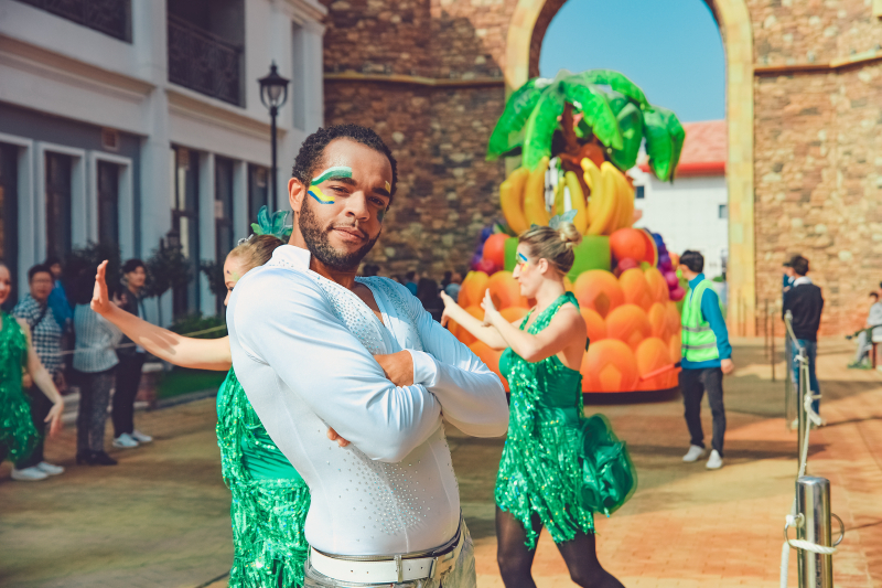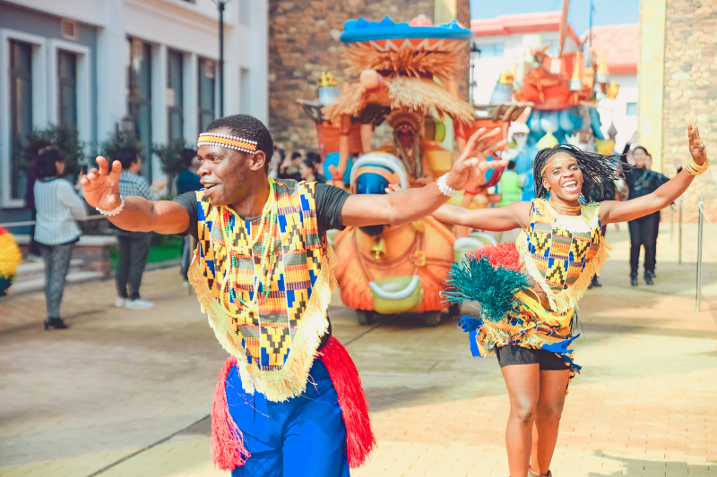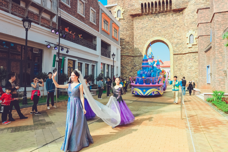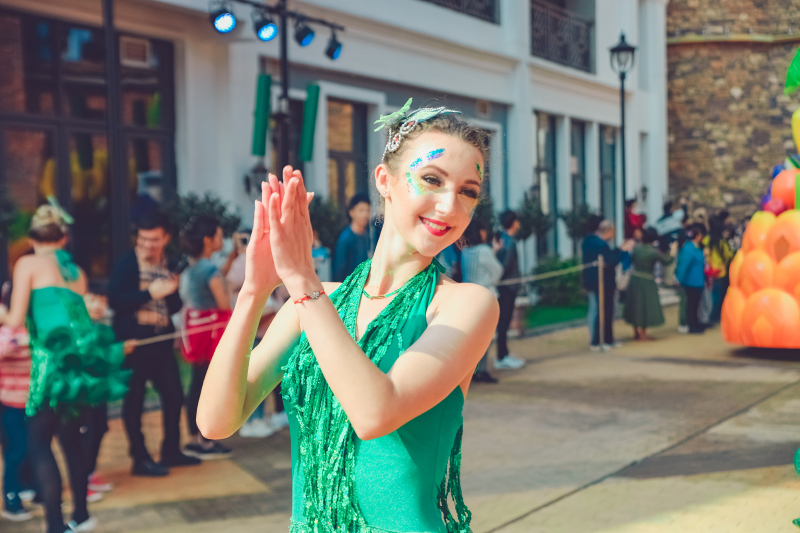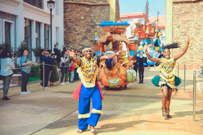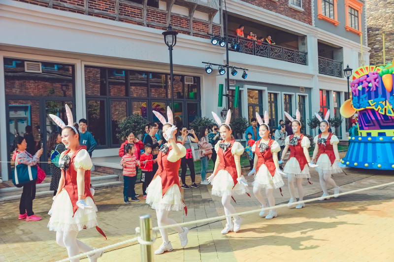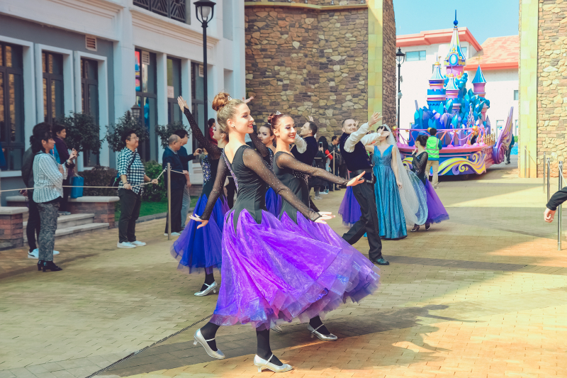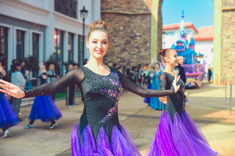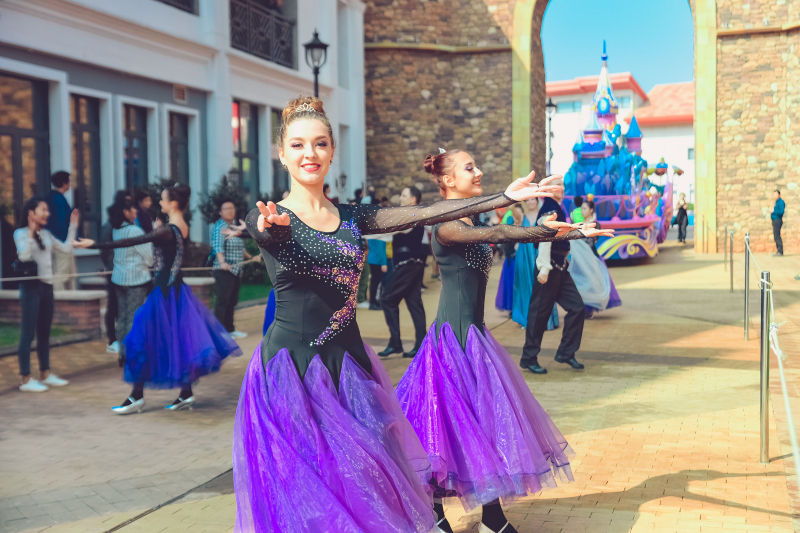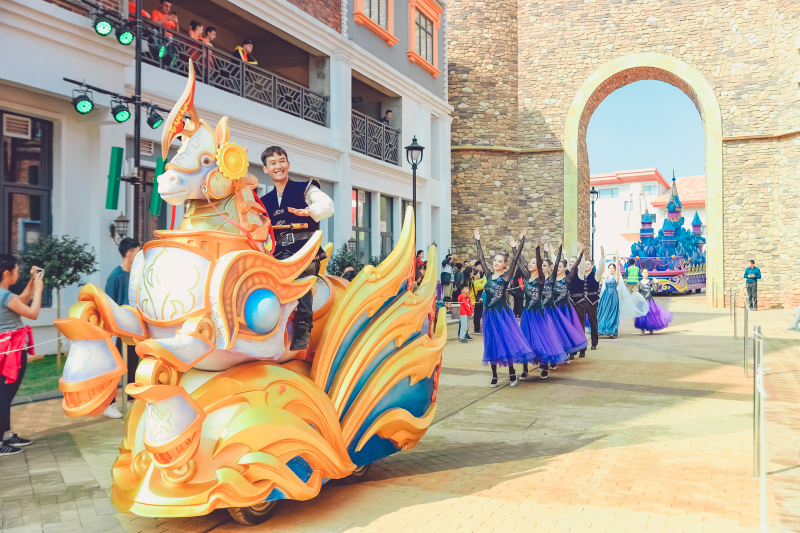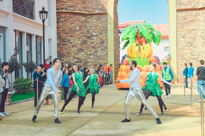 5、园区内华丽欢乐的花车大巡游,汇集了五洲十二国130多位演员,每天20多场的风情演出,与奇幻乐园的神奇角色牵手,赶赴一场奇妙舞会。