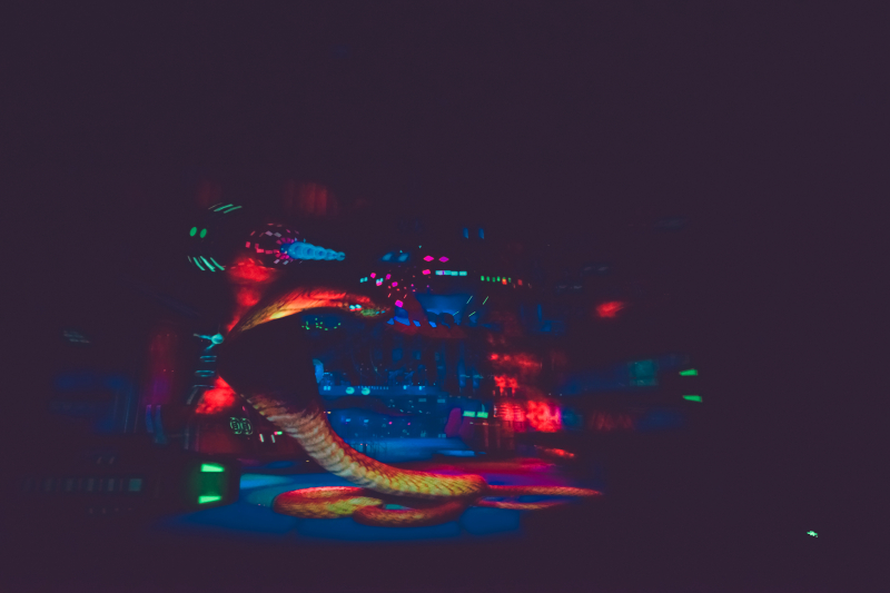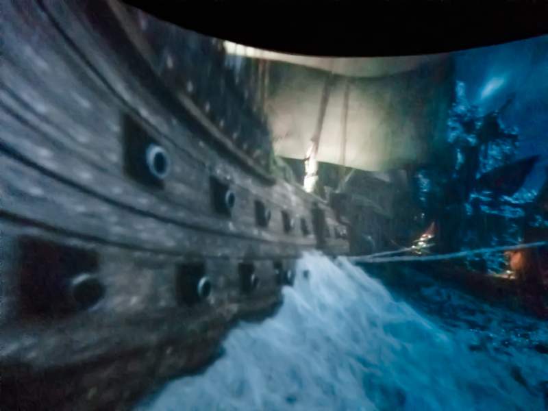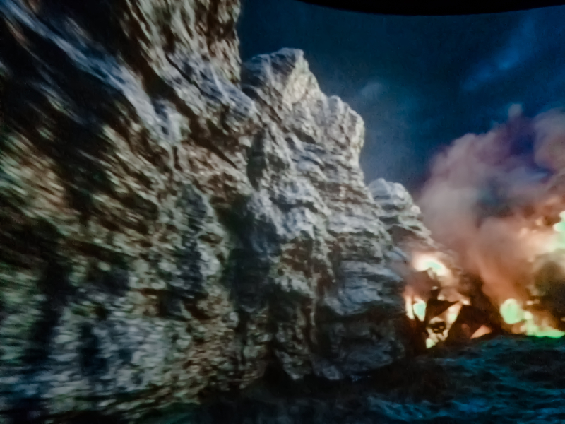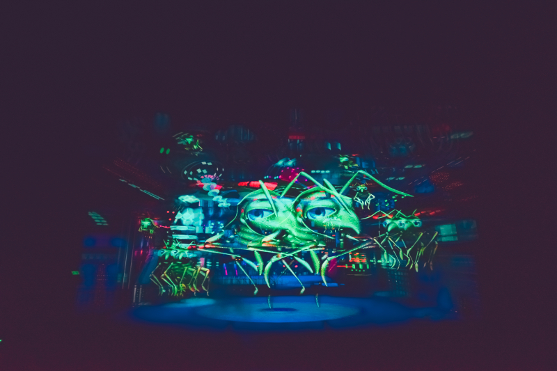 这个节目要带上特质的眼镜才能看,相机拍出来就是这个效果,整个小片10分钟左右。讲的主要故事没看明白,不过观影过程确实欢乐无限多。除了眼睛上带来的4D真实感受,影院的椅子上也有机关,老鼠和蛇爬过的感觉就是椅子在做手脚。一会暴躁的大象朝你喷水,是真的有水喷到脸上;一会逃窜的老鼠掠过裤管;一会眼镜蛇从背后爬过,惊险刺激,趣味十足。