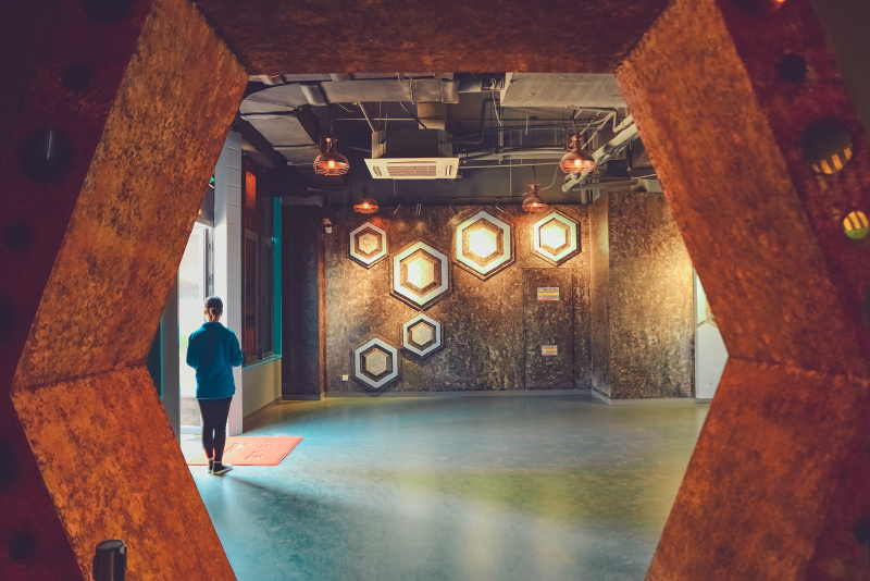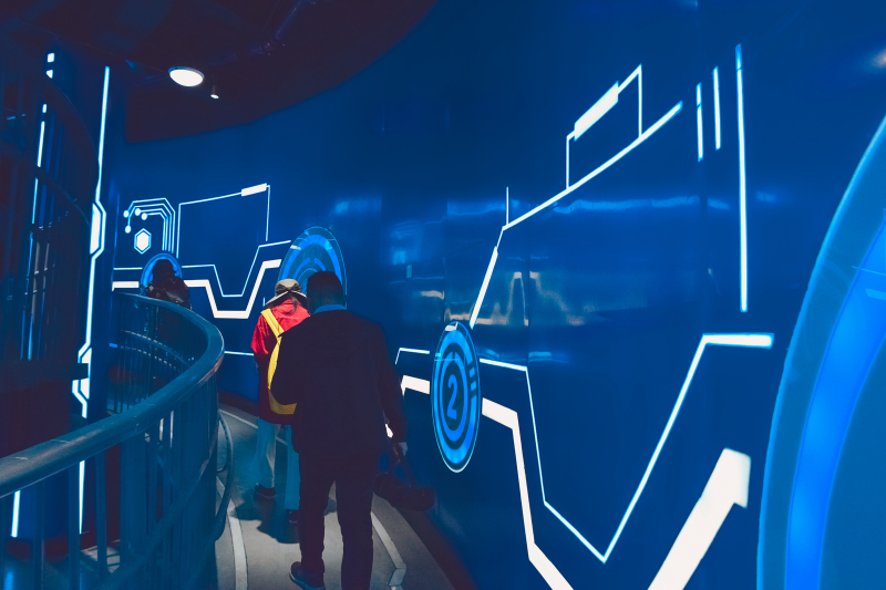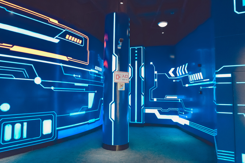 星际穿越一听就是要开始时空旅行了,超喜欢这种模拟实景的科幻体验。从入口进去整个走廊都是一股创世纪的科幻色调。