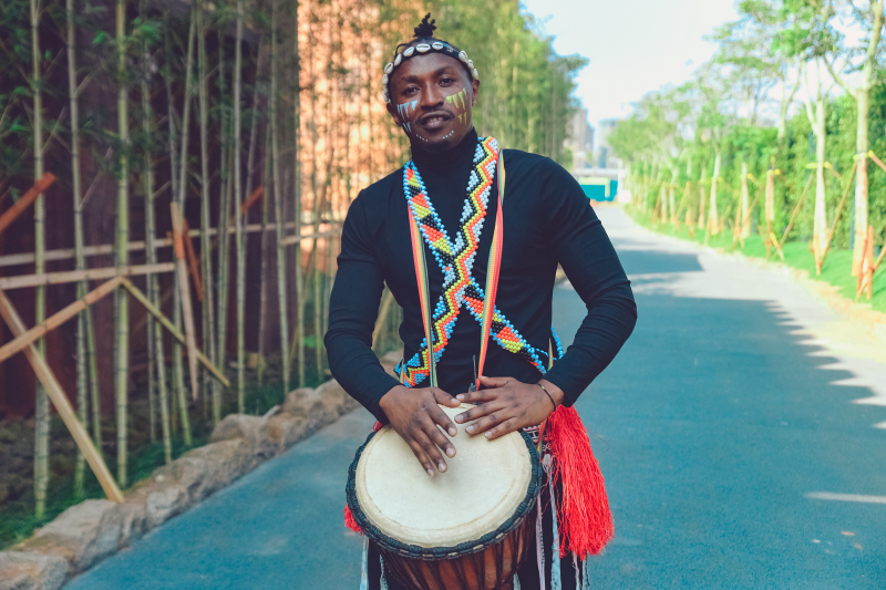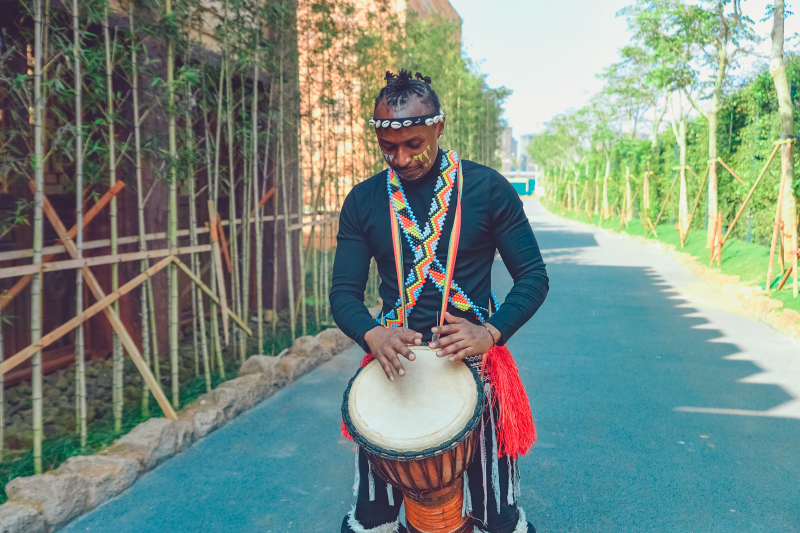 从出口出来的时候碰巧遇到一群外籍演员在练习,经过一番友好的交谈还加了微信,叫我拍几张照片发给他们,后来才知道他们来自遥远的 乌干达 ,拍几张帅照,大概是想发给家里人吧。