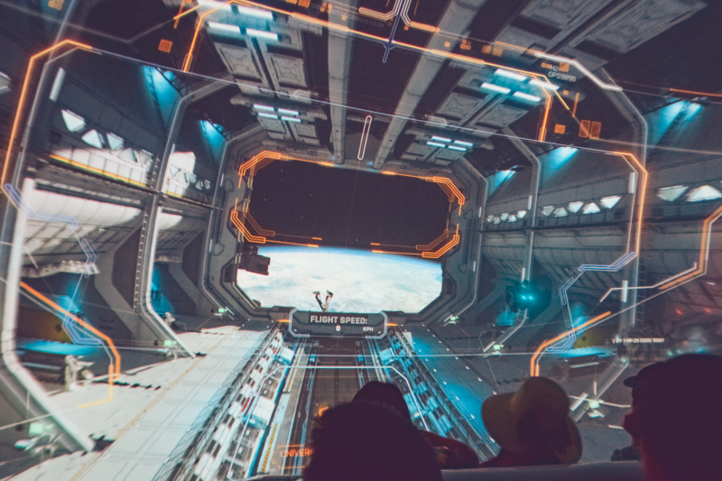 浩瀚的天空总是带来无尽的遐想,我们盼望着能像鸟儿一般自由翱翔。在这里坐上动感飞行器急速启航,强烈的推背感和瞬间的失重感不断刺激着你的心脏,传入耳畔的是发动机的律动轰鸣,映入眼帘的是浩瀚宇宙、璀璨星河。亦真亦幻的实景拍摄与特效制作,创造出魔法般的环球飞行。
