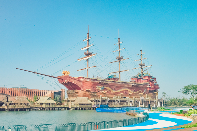 ①郑和宝船(游客化身船员,追随编队整装起航,探索西太平洋 丝绸之路 ,与滔天巨浪和未知敌人进行狂海激战,再现波澜壮阔的瑰丽航行)