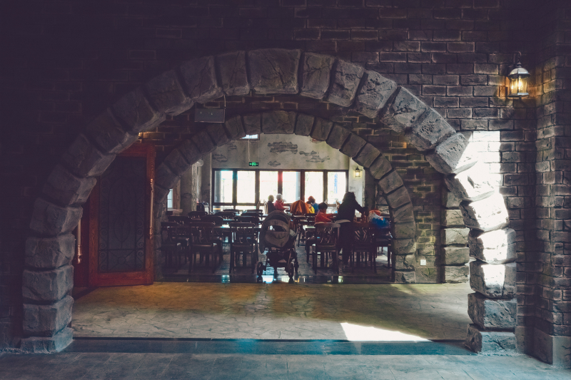 走进餐厅就好像走进了哈利波特的魔法学校,第一印象就是,这怎么能是一家餐厅呢?低色调的墙壁色彩,昏暗的灯光,真的仿佛置身神奇的魔法城堡。