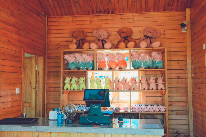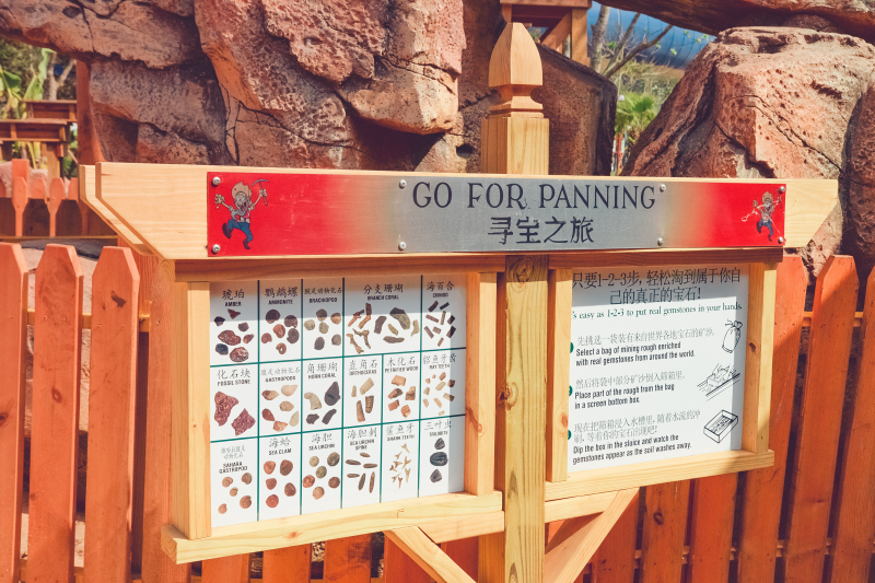 旁边的淘金小屋光靠勇气可就不行了,还要靠运气。从商店买来金沙,到旁边的蓄水池淘洗,运气好的话可以筛洗出宝石,用来兑换店里可爱的玩偶,找到的越多兑换的玩偶也就越大。