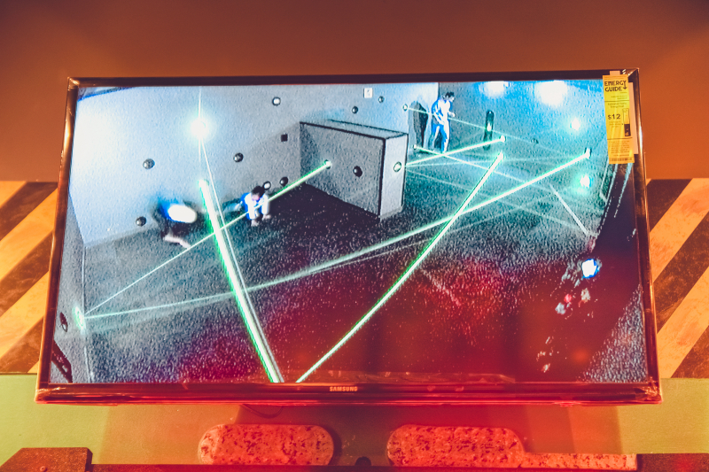 火线穿越是一个简单的小游戏,参加之前要脱掉背包和帽子之类影响身体挪动的物件,变身高冷特工,在激光镭射线中腾挪躲避,然后完成逃脱任务。
