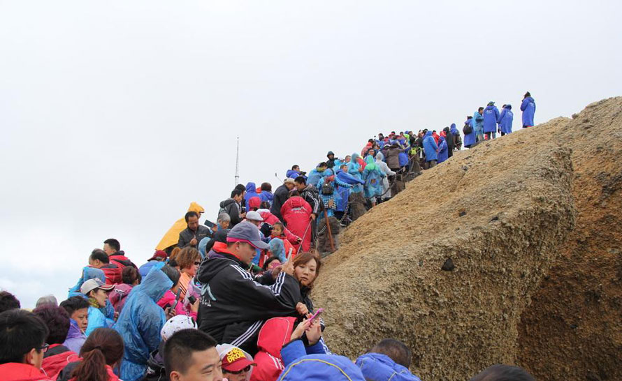 正如那位店老板所言,人果然是非常的多!无论是买票乘车,还是观景登山,都要排队排队再排队!可是导游说,现在人已经少多了,说着给我们看了他手机里节假日的照片,人头攒动人挤人,用人海形容一点也不为过,导游说,唉,也不知是看景呢还是看人呢!