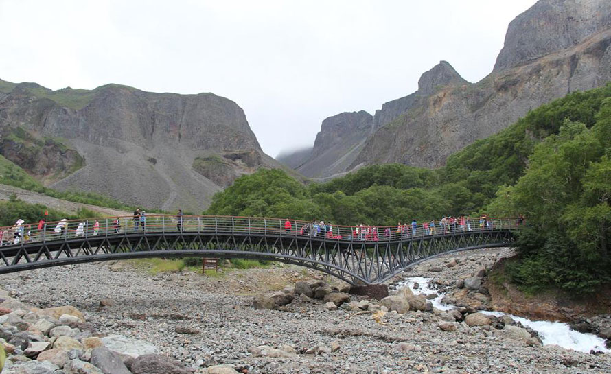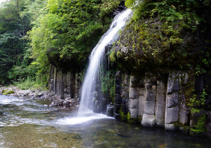 天池之水在北侧溢出后,经乘槎河喷豁而出,在其1250米的尽处,突然倾泻而下,形成了落差68米的瀑布,这也是松花江之源,东北最大的瀑布。瀑布口有巨石,名曰牛郎渡,将河水分为两股,像两条白河落下,于是就有了“二道白河”镇名的由来。
