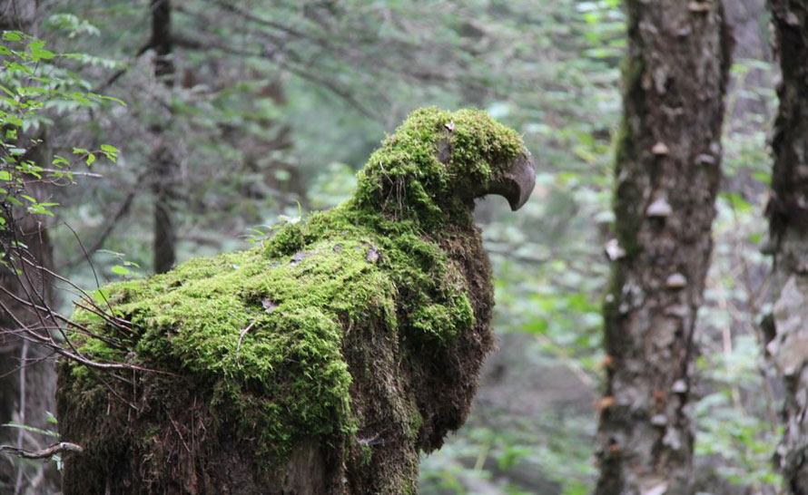 出瀑布又乘车依次去了绿渊潭,一潭碧水,非常清澈,也有瀑布流下。最后是地下森林,就是一个地凹处,大约走上1500米后爬到了山顶,可以看到整片茂密森林,似在地下一样,所以名曰地下森林。林内有各种木雕:鹰、雕等。因往返3000米要80分钟,所以,我们几个走到半路折返回来。就乘车离开景区。至此,长白山就算全部游览完毕了。