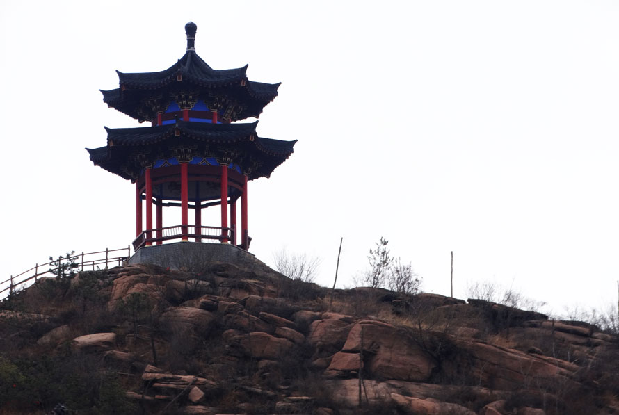 沥青环山路四通八达,水泥盘山路飘如白练,车辆行人,秩序井然。白墙红瓦的小村庄如散落的棋子,新起的高楼造型别致,尤其是山北兴建中的“金查理小镇”充满了异国风情。碧绿的麦田,黄色的土地,覆着白膜的菜畦,阡陌交通。还有一方方池塘,一座座果园,一片片苗圃……东望振华塔巍然屹立,碧霞宫在松柏掩映中犹抱琵琶半遮面,青墩水库迷迷蒙蒙。西望马耳山双尖清晰可辨,群峰绵延。北望城中鳞次栉比的高楼笼罩在淡淡的烟雾中。北面依山而建的常山文化博物苑,朱墙金瓦,殿宇层层,气势宏伟,美丽壮观。院内气象万千,即使走马观花,游览完也要两个小时。迄今为止,文博苑算得上诸城大地上较为耀眼的建筑了。