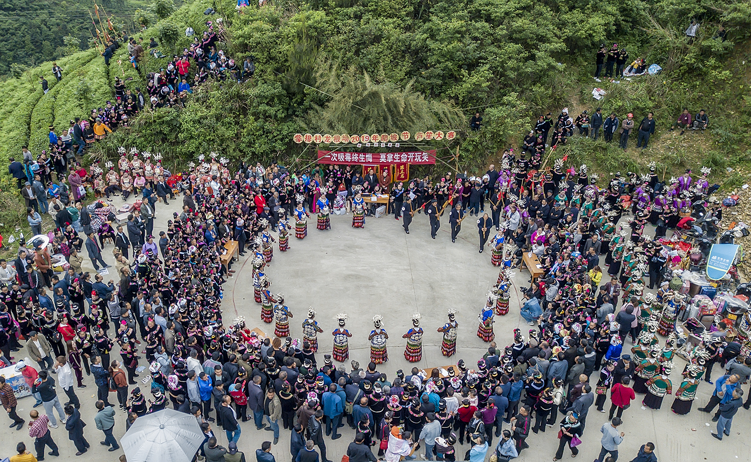 俯瞰整个龙根坳爬坡节的会场,翠绿茶园的山脊上,一条红色的游人带很是醒目,让这平日里安静的山峦变成了欢乐的舞台,这样精彩苗族的盛会,激发了我对其渊源的探寻。