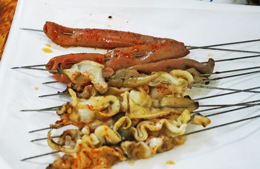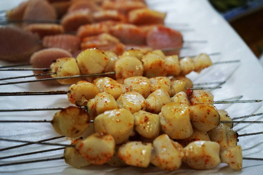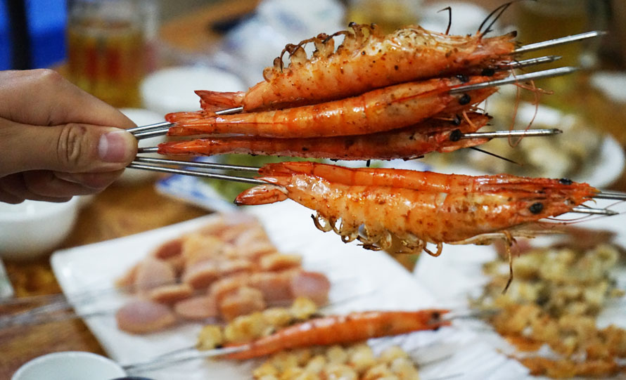 各地的吃喝江湖里,少不了烧烤,但这里的烧烤基本都是烤各类海鲜,没什么羊肉串。这个发现让我略有惊讶。在北方地区的夜生活里,烧烤摊档里如果没有羊肉串那烧烤摊就失色许多。