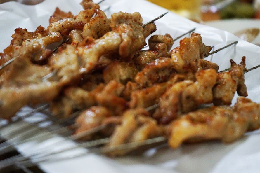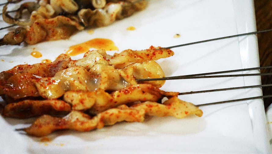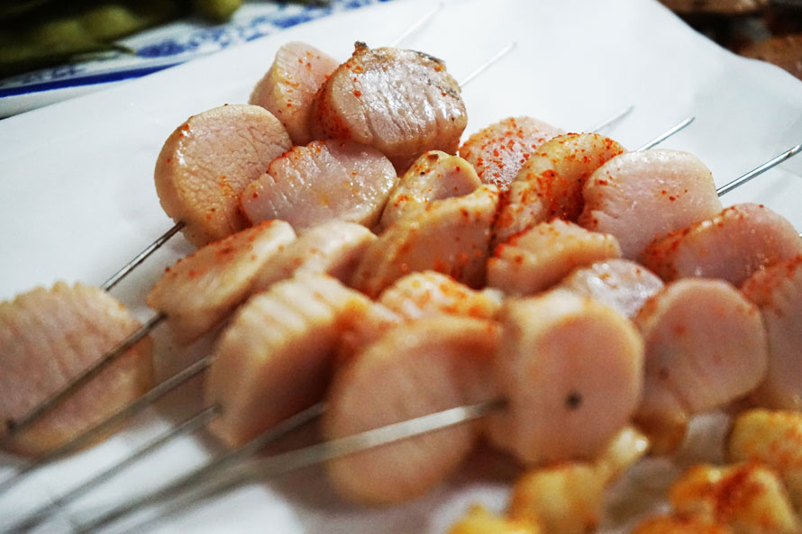 烤五花肉或许是烟台人民吃烧烤时不可缺少的选择,经过烤制的五花肉,油脂噼里啪啦的乱飞,甚至爆燃,慢慢地,肥肉部分变得晶莹透亮,散发着独到的香气,撸上一串咀嚼,肥而不腻,顷刻间就辨别出与炒菜香的区别。