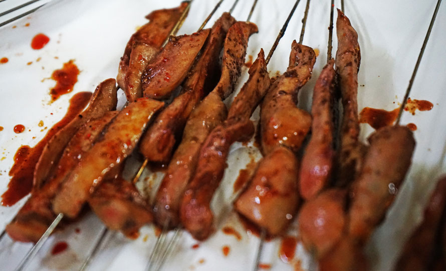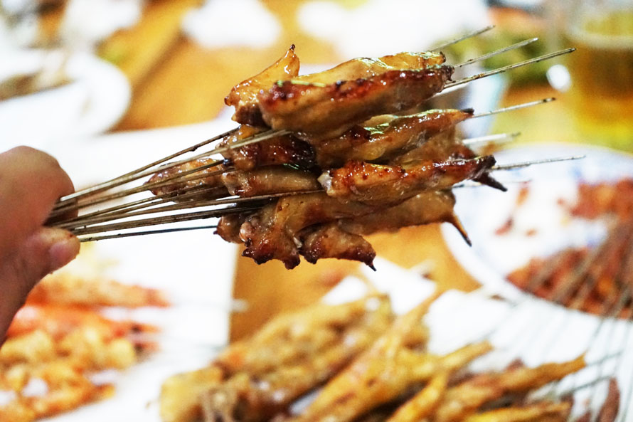 到达一家叫“阿宋烧烤”的店门里,食客已座无虚席,老板专门留了一个桌位等着我们。