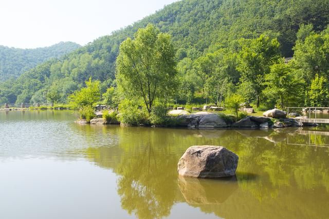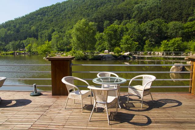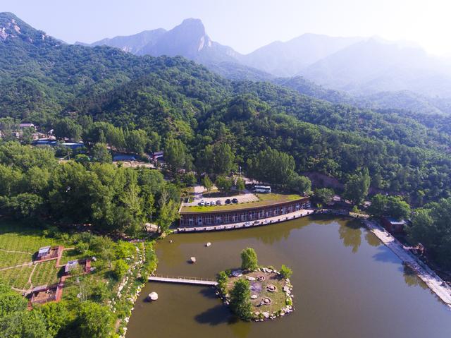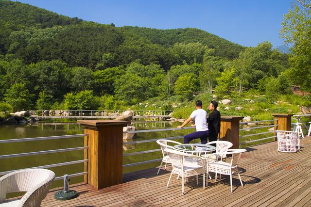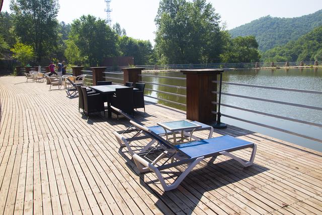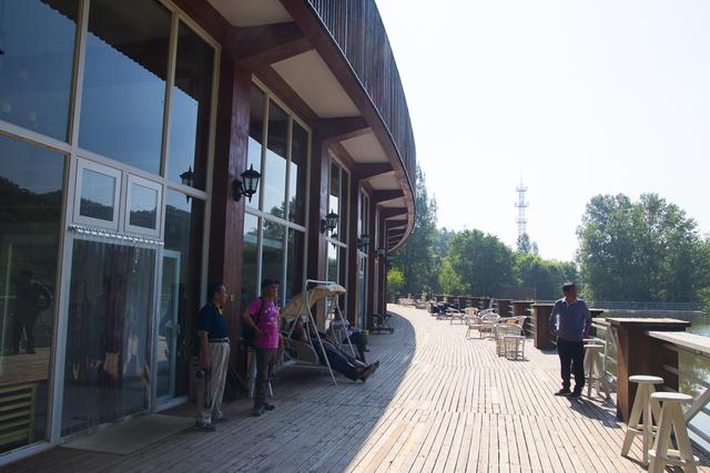 下车以后,顿觉神清气爽空气清凉。这里的温度比北京城要低10°C左右,全无城里的闷热感。大家都饿了,纷纷奔向了餐厅。餐厅位于湖边,是一排弧形建筑,分了若干单间,可以同时为十几个团队提供独立的就餐空间。