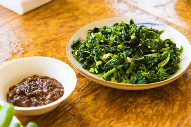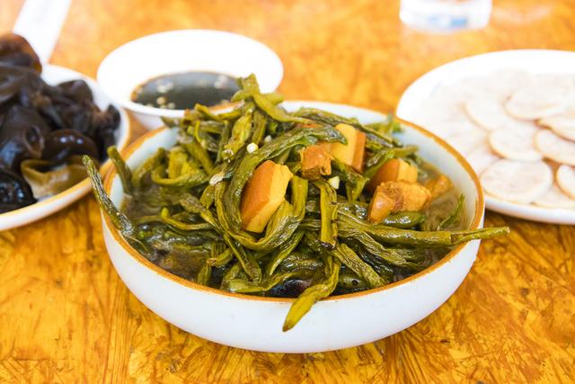 烤全羊是一道大菜,除了烤全羊更多的是这里的农家菜,闲云山房周围是郁郁葱葱的山林土地,所产的各种山林野菜和水产都是我们餐桌上的美味,有刺五加,葫芦条,水芹菜,花椒芽,野木耳等。