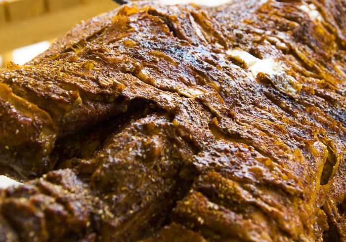 这样烤制出来的羊,调料与羊肉完美的融合在一起,外焦里嫩,油而不腻,色香味俱全,让人胃口大开,欲罢不能。这种满族烤全羊是我吃过的最好吃的烤全羊,没有之一。