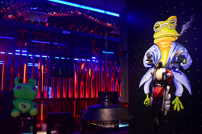 随处可见的蛙元素,有蛙的涂鸦,生动传神。