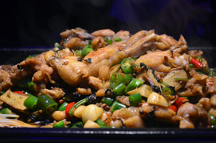 炭烧牛蛙泡锅(香辣味),热气腾腾,香气四溢,夹起一块送入口中,香辣够味,瞬间激活味蕾,喜欢吃辣的同学一定要点这道哦!