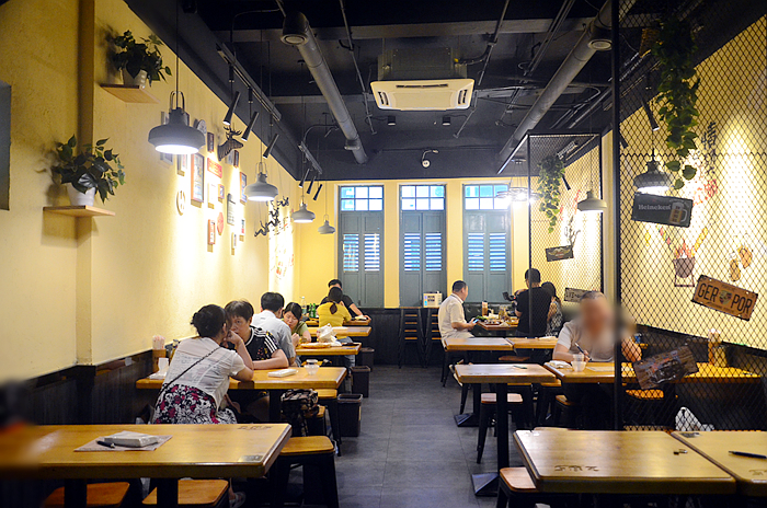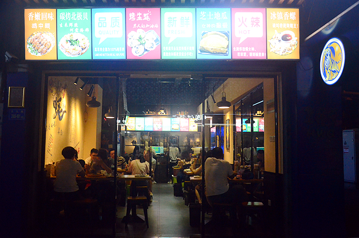 外墙贴着诱人的菜品图片,店内透出温暖的灯光,让人迫不及待进店大快朵颐一番。