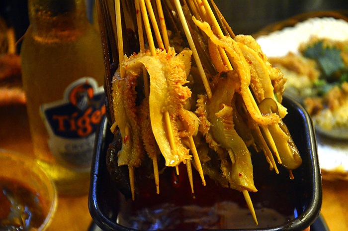 川派牛心管,切成小块,洁白如玉,口感嫩而弹牙,筋道而不难咬,烤的很入味。