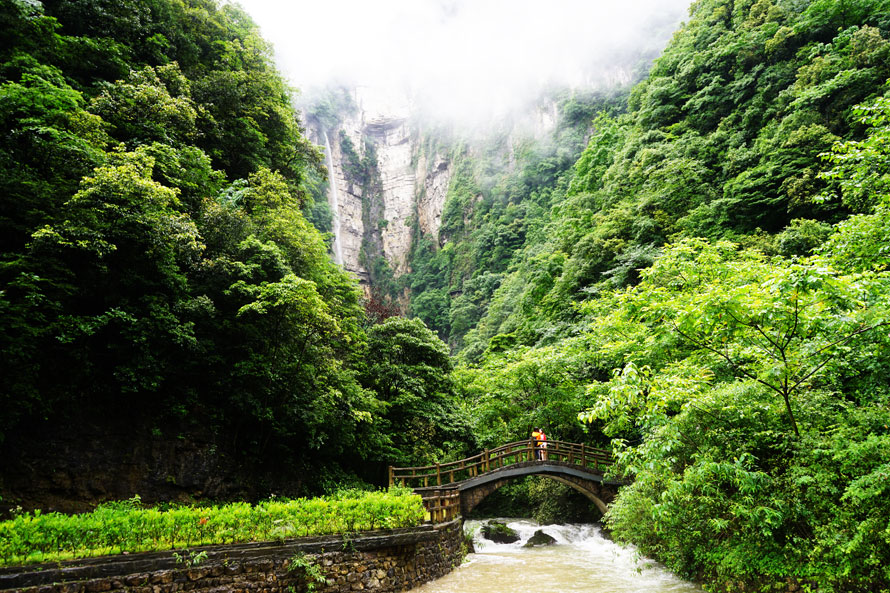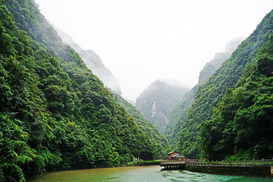 鱼游浅底,鸟翔空谷,原始植被铺陈于眼前,苍翠欲滴;细雨时有时无,叶子收集了雨点然后落在行人的发间,清清凉凉。