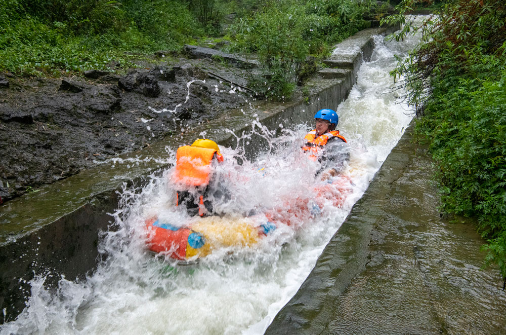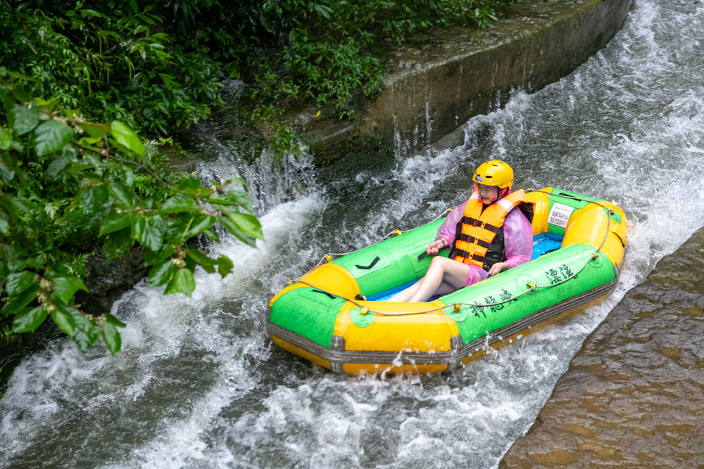 当然,来到这里,没有人会错过一场原始峡谷的“尖端”漂流。穿上救生衣,两人一艇,相对而坐,四脚相抵……当漂流处的工作人员将你乘坐的小艇推向湍急的河流中央时,你会发现,别人的尖叫声并不是为了引人注目,而是因为刺激产生惧怕。因为一个三四米的落差,就足以让你全身湿透,那汹涌扑来的泉水瞬间覆盖小艇,然后归于平缓。酷暑已然不在,阳光似乎也失去温度,山风一吹,凉飕飕的。