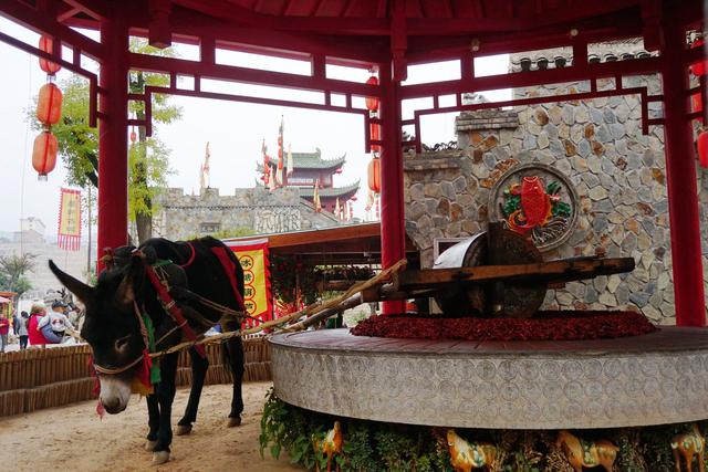 街口不远处的辣子坊,一头黑驴正慢悠悠拉着石碾磨辣子。传承千年的石碾辣子,饱满着游人的感官和味蕾,丰厚着庆城人的日常生活,农耕文化亘古不衰的历史气息扑面而来。