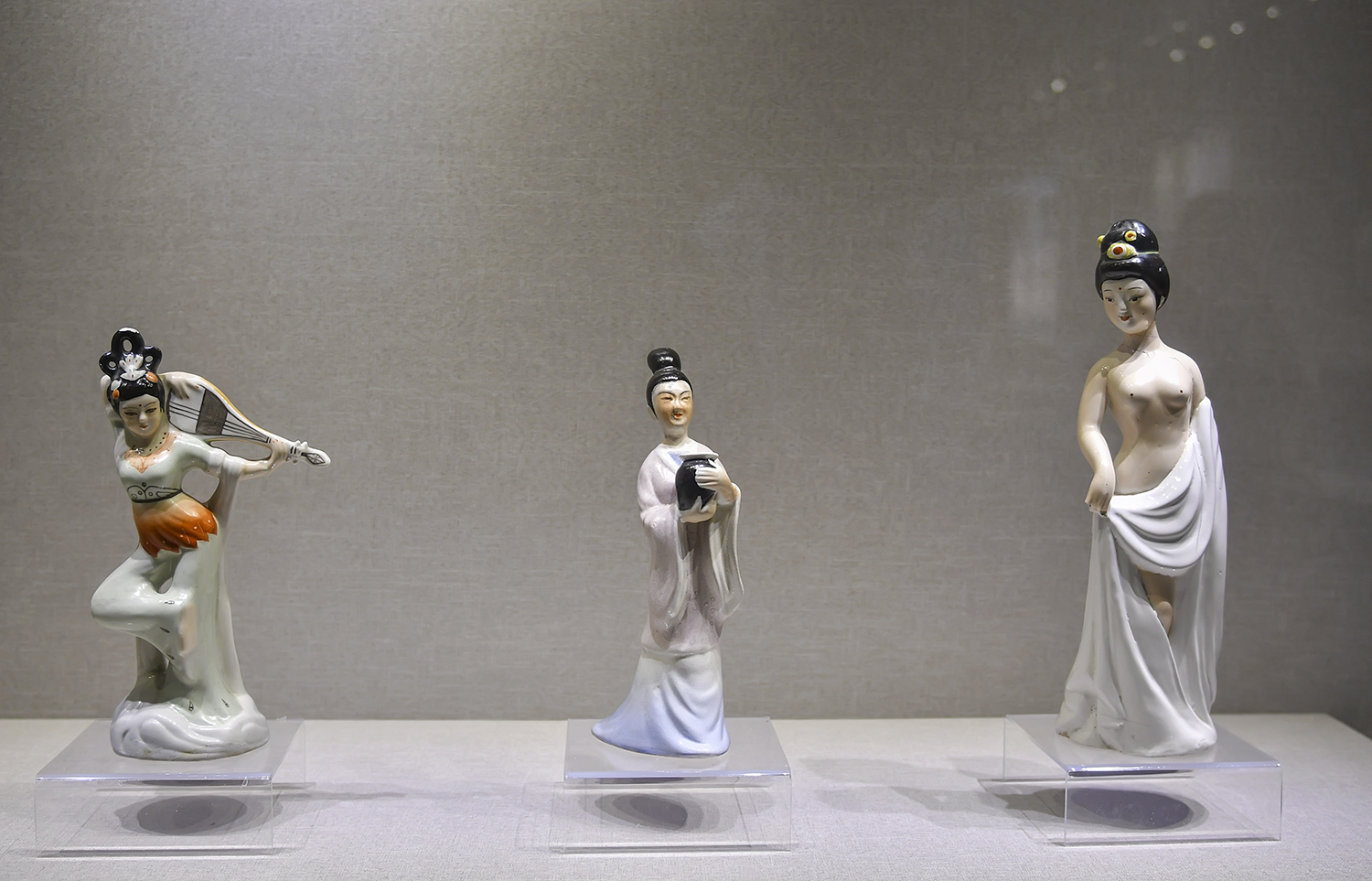 这一组摆件是安口窑八十年代的作品,造型端庄大方,线条飘逸,人物活灵活现,其中“反弹琵琶”获甘肃省工艺美术百花大奖。