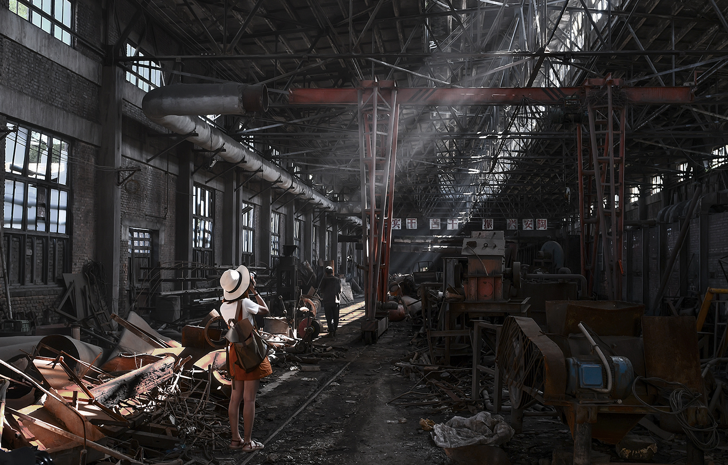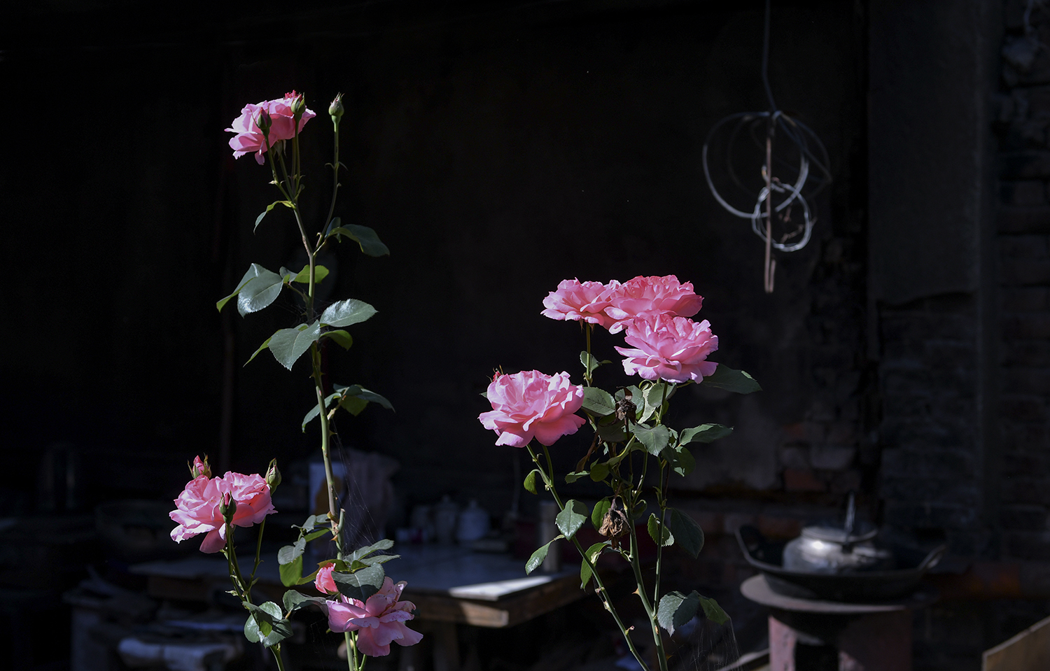 昔日人声鼎沸的国营大厂,荒草齐腰,只有看门大爷小院中的月季,还在肆意怒放,似乎在呐喊......