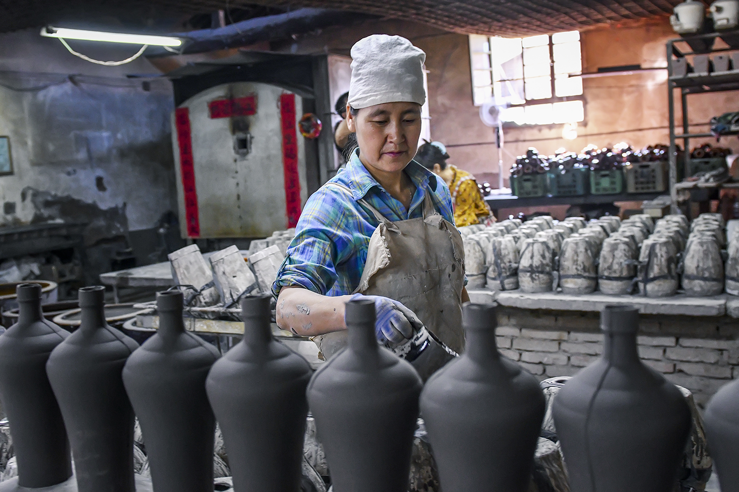 或许都是为了生存,其产品一眼就能看出是某酒厂定制的酒瓶,若用传统的技法也许连匠人的工资都开不出来,用模具制作快捷,产品统一,符合定货方的要求。