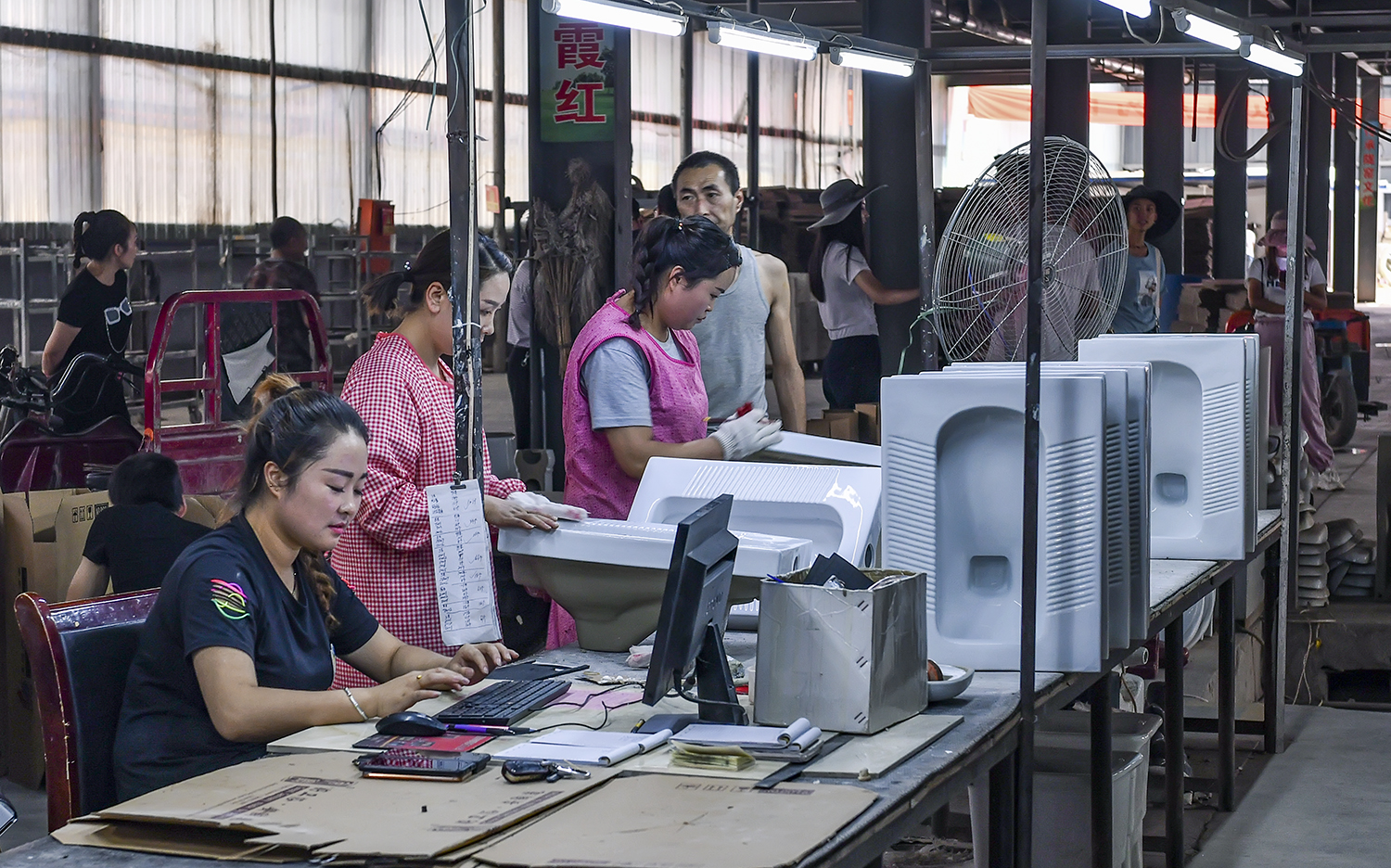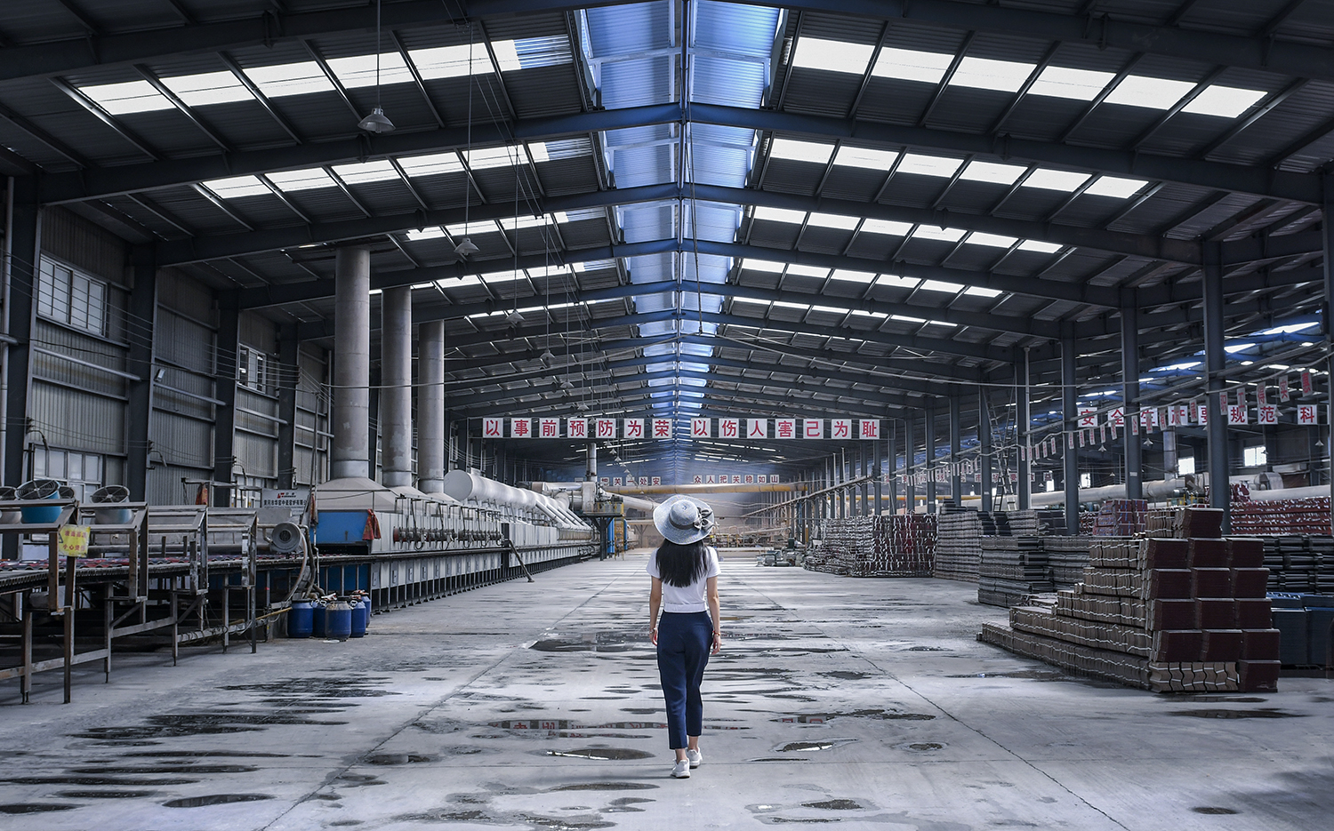 高大宽敞明亮的厂房,流水线生产的模式,加上电脑的系统的管理,让我眼前一亮。其主打产品,一是彩钢瓦,二是卫生洁具。全部都符合国家新农村改造和厕所革命政策的需求,精准地把握着住了市场的脉搏,这生龙活虎的景象,仿佛又见到昔日安口窑的鼎盛。