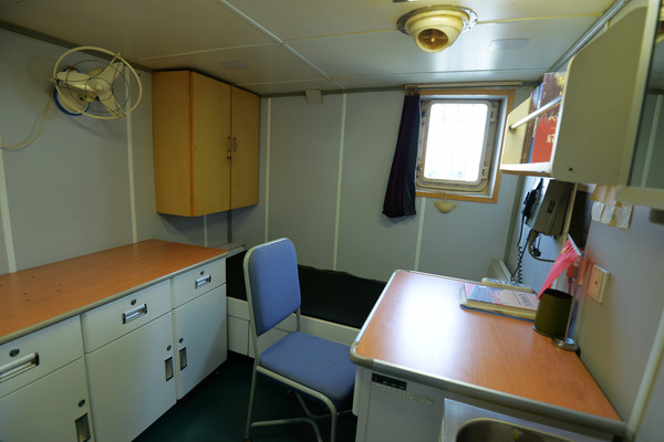 二楼首先看到的是听音员室,这个舱室主要负责与水下潜水艇的通信以及监听声呐,以探测水下潜艇、鱼雷以及一些障碍物。一旁的则是机要员室,是机要员居住及办公的地方。旁边的则依次是副舰长室、政委室。