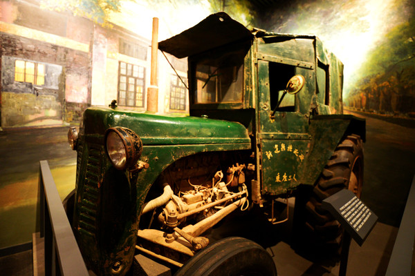 车间里保留的这台拖拉机是有故事的,小平同志在车间干活时有一次突然晕倒,车间里的工人都慌了,不知小平同志患了什么病。卓琳问工人程红杏的家里有没有白糖,那时白糖是紧缺商品,要凭票供应。程红杏二话没说,跑回家里拿来白糖,冲泡了一杯浓浓的白糖水,让小平同志喝下去。小平同志缓过来后,厂里破例第一次用这辆拖拉机把他送回步校的住所。过去的岁月里,厂里不管怎么难,都没舍得卖掉这台拖拉机。多年后,邓小平同志用自己的钱买了一辆客车送给厂里,卓琳同志还附了一封信,真诚感谢工人们在三年多的岁月里对他们的关心爱护和照顾。