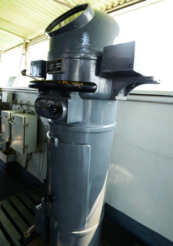 现在我们来到了第四层驾驶舱,这里的装备主要是用于军舰航行和武器发射的。旁边的是一台导航雷达,测定物标的方位和距离,测定舰艇在海上的位置,也可扫描到附近的障碍物。
