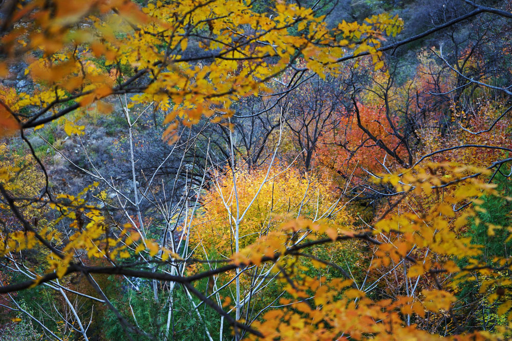 从北京市区驱车出发,按照导航走108国道两小时多一点后,就到了房山霞云岭金水湖。沿途景色绝美,据说这条道路被人们称作是“北京的川藏线”,我想,这样说并不是指这条道路有多难走,而是指景色怡人吧,走一遍你就会发现这条路虽然在山谷蜿蜒曲折,但是沿途的确风景秀丽,满目秋色。