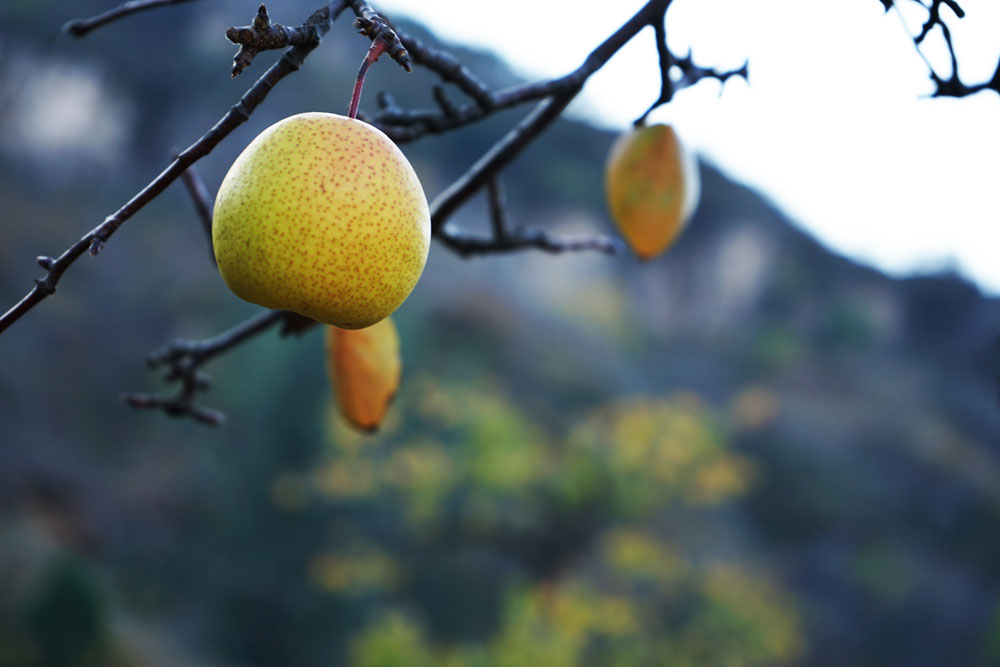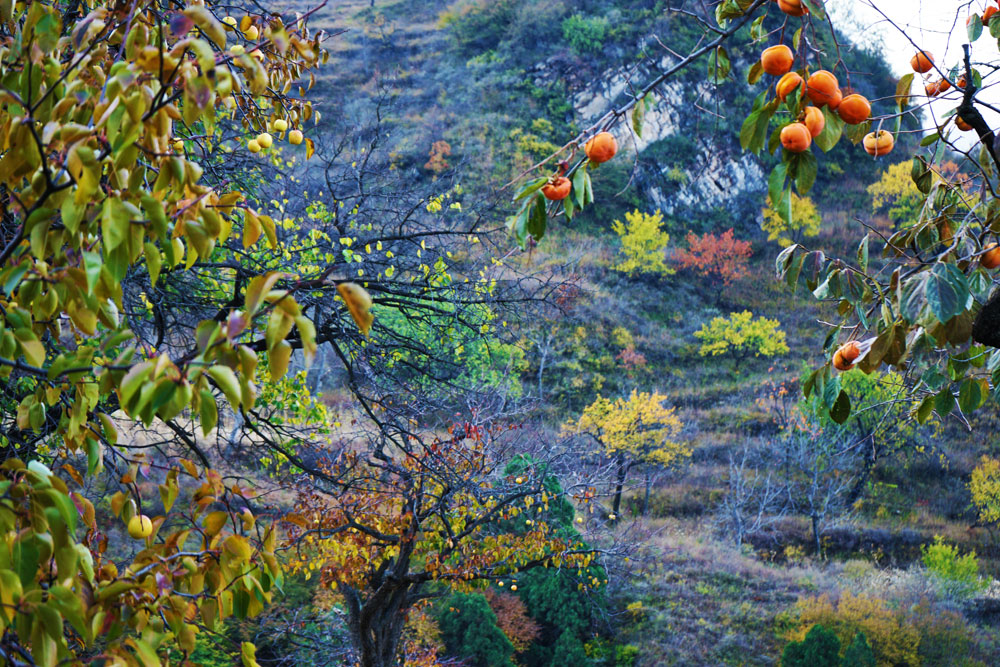 爬爬山是一个不错的选择,随意选择一条上山小径都能遇到一个迷人的秋天,除却草木斑斓的颜色外,小径上的亭台楼阁,以及压弯枝丫的大红柿子和红肖梨是让人惊喜的存在,它们在山野兀自成长、成熟,然后掉落。