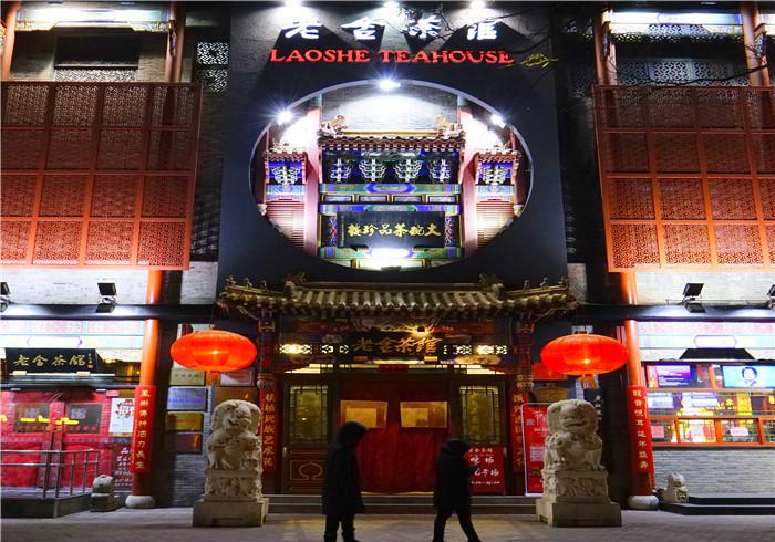 游客走进老舍茶馆,可以品茗看戏,相声、小品、杂技、曲艺轮番上演;看老北京传统文化展示,非遗艺术绝活频出;品京味小吃,看老北京中规中矩的四合院。