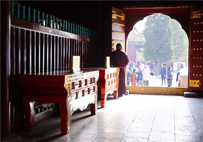 这处终日香火缭绕,颇有气势的古建筑据说最初也是绿色琉璃瓦,后因雍正帝驾崩,灵柩停放于此,又因乾隆皇帝诞生于此,被人们视为“龙潜福地”,于是成为现在这般模样,殿宇为黄瓦红墙,与紫禁城皇宫享受同等待遇。