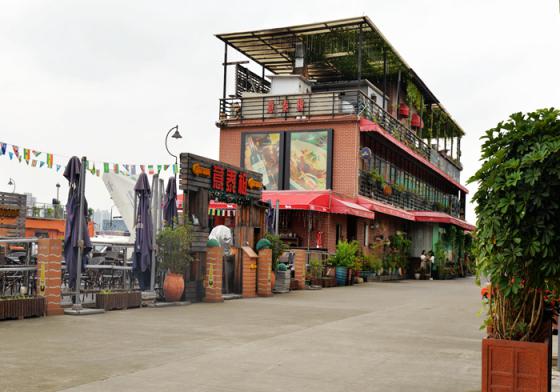 各家餐厅都装潢得很吸睛,下午开门的餐厅不多,都是做夜生意。傍晚时分到这里就餐,就着广州的夕阳、珠江的夜景入席,别提有多惬意,且不论厨师的手艺,光吃个环境,就已经觉得是一番享受了,生活原来是如此美好。