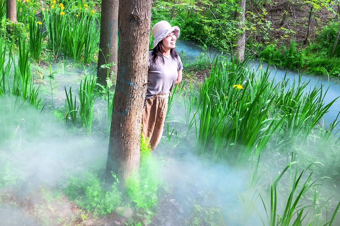 这条小溪原本非常普通,但是经过人工的打造便为旅游增添了新的情趣。溪流中的大石在水雾中若隐若现,真的是“人间仙境”了。大家既可以在远处观赏,也可置身于若隐若现的茫茫雾海中,最受女同胞喜爱的是大家拍照留念,都有了飘飘欲仙的效果。呼吸着清新的空气。怎么样?大龙沟是不是人间仙境?