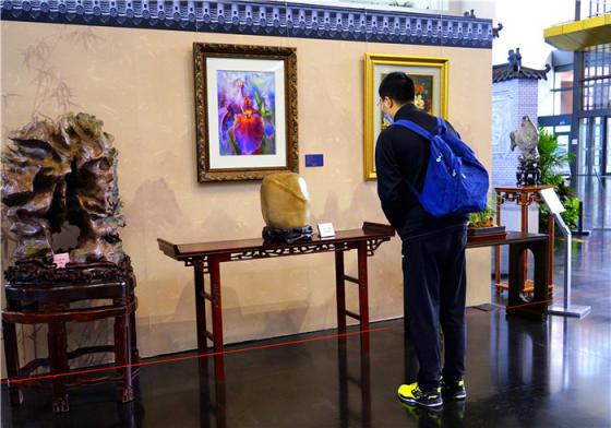 大厅展示的名石也是中国传统园艺中不可或缺的点缀。其中一块清代落户圆明园长春园的太湖石就有着800余年的历史,有人对其考证得知,这块石头原是南宋临安德寿宫中的老物件,曾用名“芙蓉”。乾隆十六年(1751年),乾隆帝南巡到杭州,发现了这块宝物。次年,地方官们将这块太湖石送进京城,乾隆将它命名为“青莲朵”。