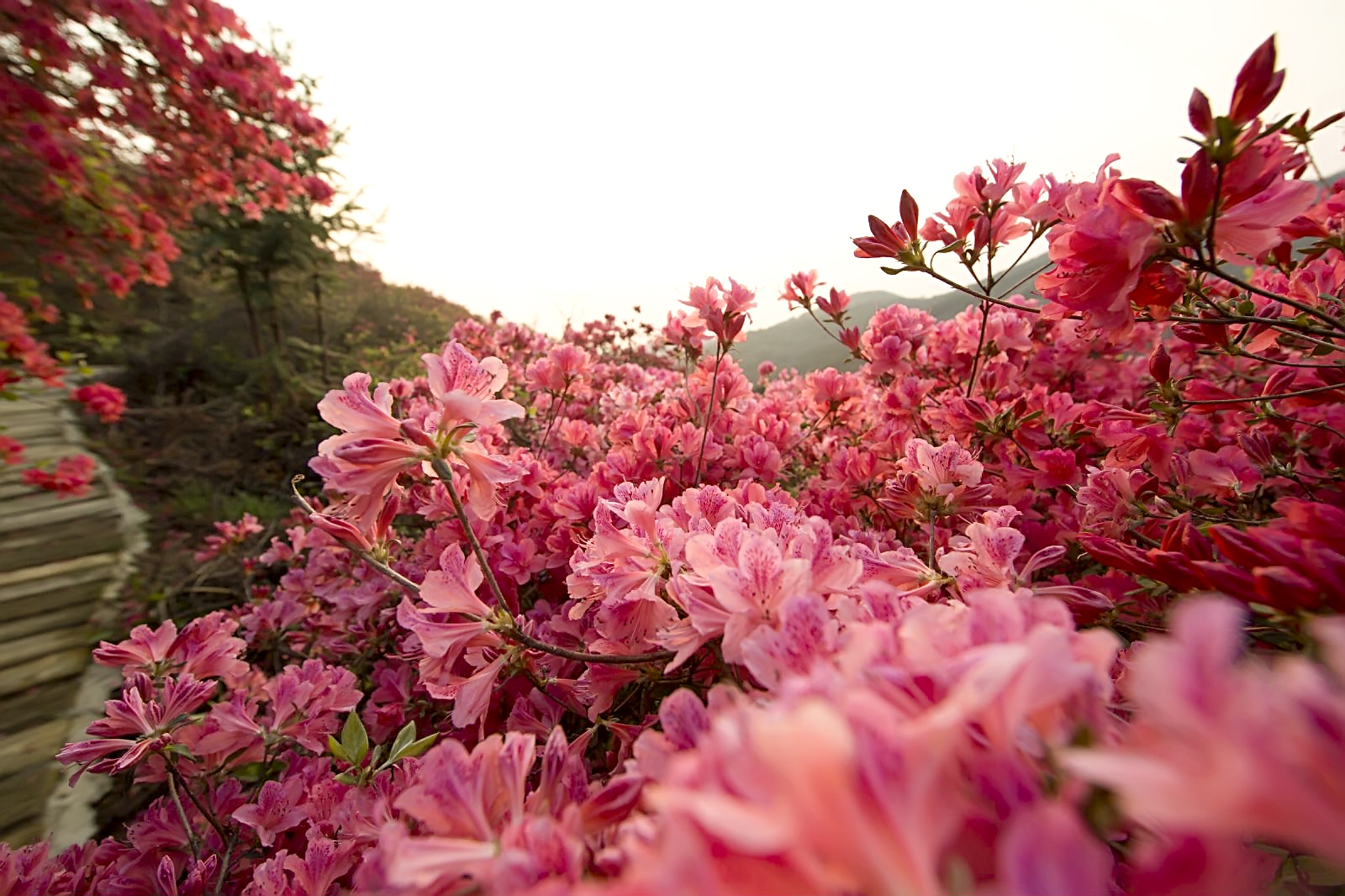 最喜欢的是那条原始的杜鹃林荫道,蜿蜒盘旋在十里花山之中,一人多高的自然生长的杜鹃花树姹紫嫣红,天然搭成了一条林荫小道,漫步其间,宛如走入了梦幻的童话世界。