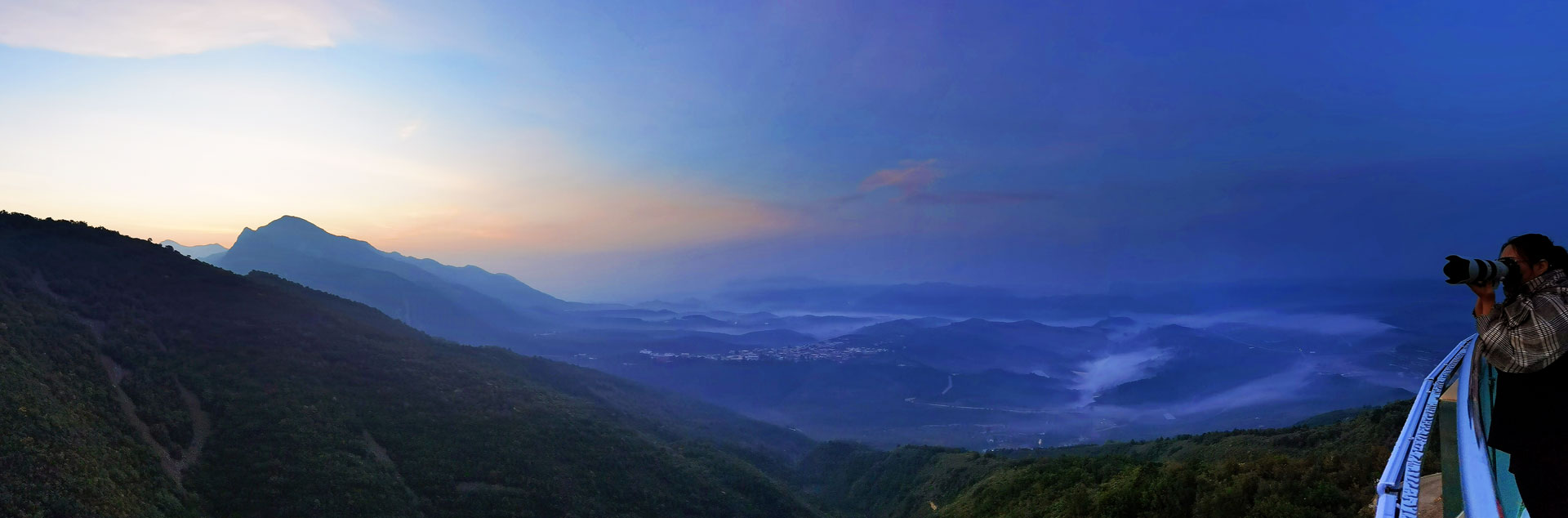 如果在清晨登临,那又是另一番景象,日出山峦之际,玻璃平台在晨曦雾霭里净若玉盘,脚下即是云雾,耳边即是尘烟,目力所及,万物喑哑,天地之间空无一物,颇有望尽古今,四大皆空之感;晨赏日出、云海,晚观落霞、星空简直美不胜收。