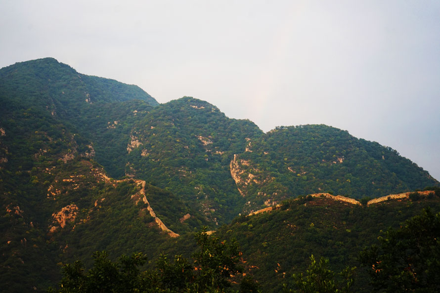 抵达蓟州车神架的时候,一场初秋的小雨温润了蓟州大峡谷里的草木,层峦之上的云雾氤氲、升腾,天空放晴,天际处一道彩虹悬挂于山巅,瞬间美化了苍茫的山川。